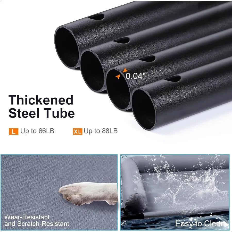 Large Elevated Dog Bed with Pillows Outdoor Cooling Raised Pet Bed with Bolster Indestructible Chew Proof Dog Cot with Breathab